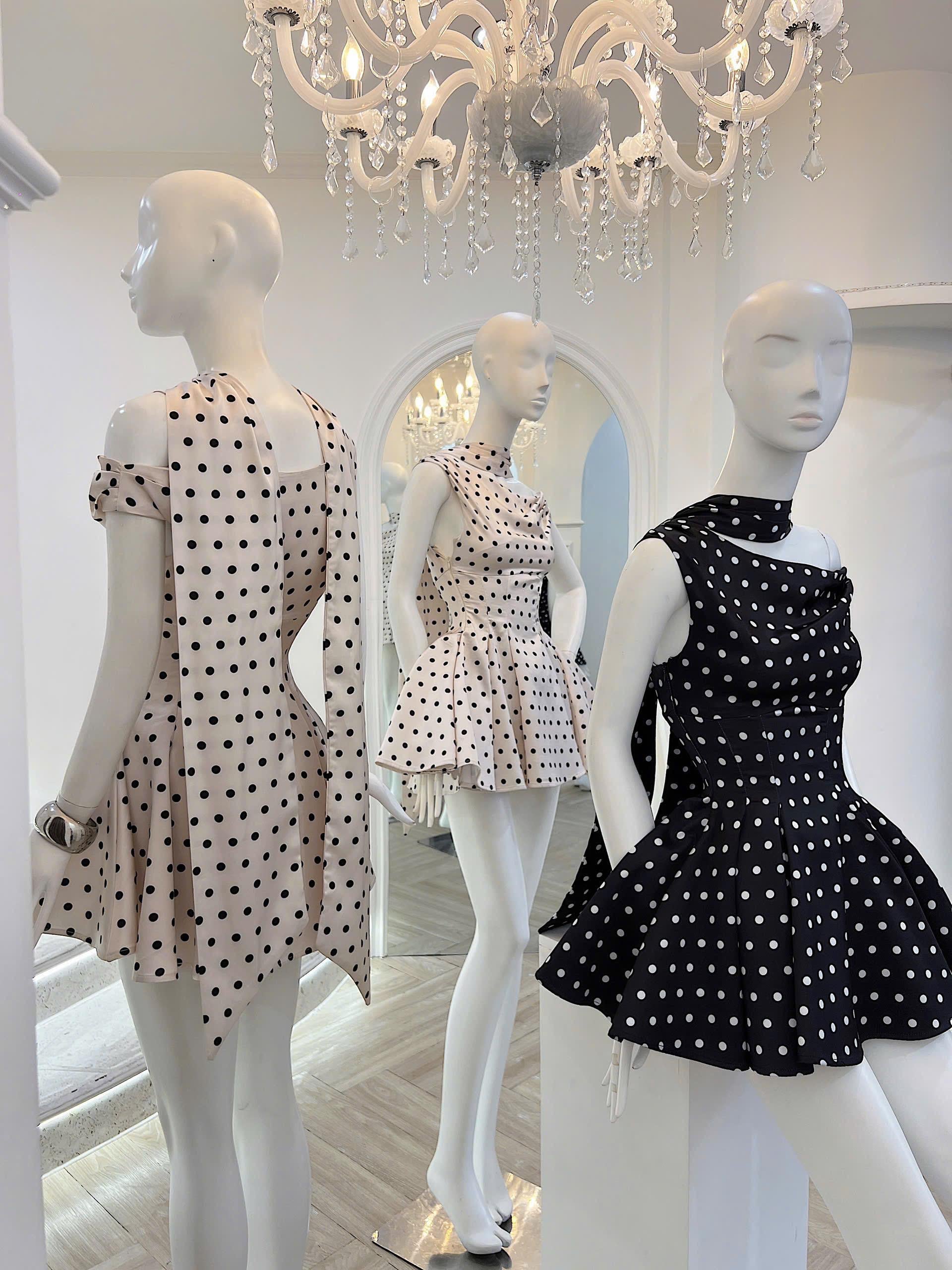 ✧ A playful yet chic one-shoulder polka dot dress featuring a statement bow and flared skirt — the perfect blend of vintage charm and modern elegance